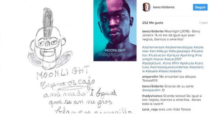 Y esos dibujos de carteles de películas están triunfando en Instagram en el perfi, LaEscribidanta abierto por Sergio donde cuelga los dibujos de Teresa "mi abuela, padece Alzheimer desde hace 7 años".
