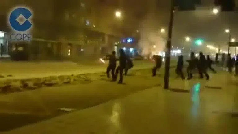 Disturbios en la calle Vitoria del barrio del Gamonal, en Burgos, la madrugada de este domingo.