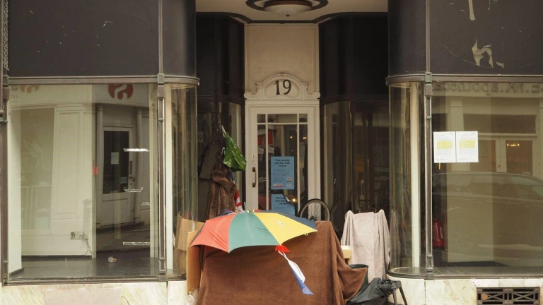 Hombre sin hogar de Valencia en la calle con un montón de cosas