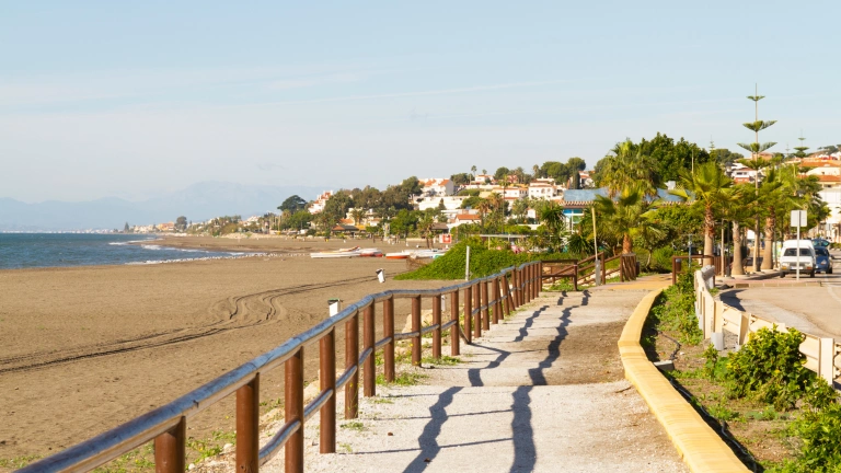 La playa y el paseo marítimo de la ciudad española de Benajarafe en la Costa del Sol