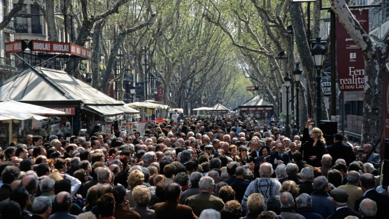 Calle concurrida de Madrid, España