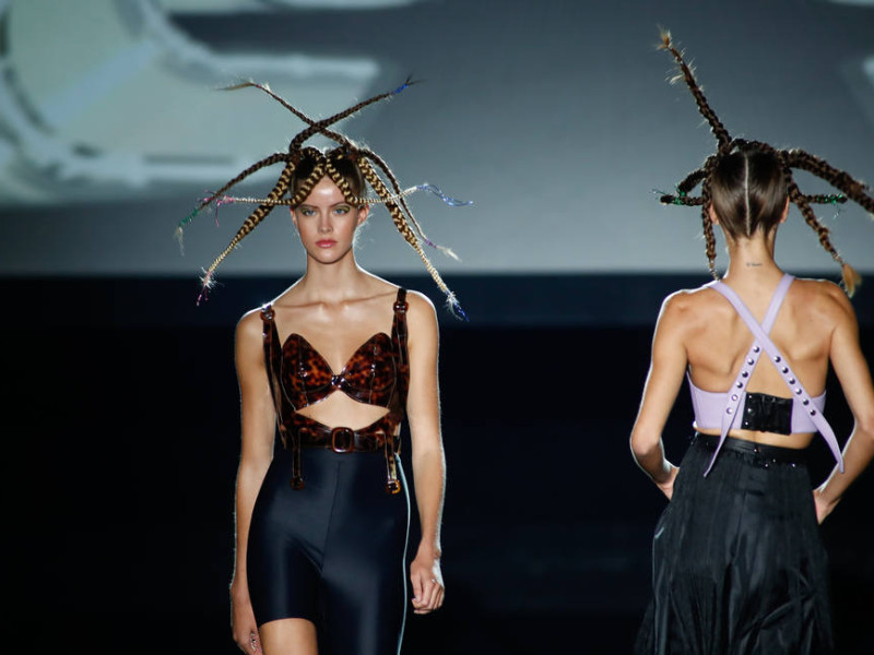 En la segunda jornada de esta atípica pasarela madrileña en la que la mascarilla de Béjar es el accesorio más demandado junto al gel hidroalcohólico, se han visto las propuestas futuristas de Dominnico, piezas que lucirán mujeres de la generación Z y divas del espectáculo como Rosalía o Lady Gaga.