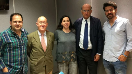 Con Sixto Naranjo, Pilar Abad y Javier Fernández Mardomingo. Nos visitan el ganadero Javier Sánchez Arjona y Agustín Marañón, vicepresidente de la Tertulia Taurina 'Amigos del Conde de Colombí'