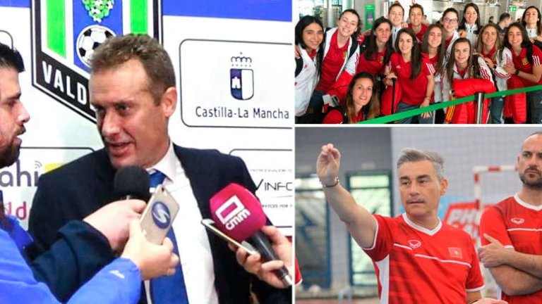 Con Santi Duque, y tres cracks: David Ramos, técnico del FS Viña Albali; Miguel Rodrigo, seleccionador de Vietnam; y Silvia Aguete, portera de la Selección