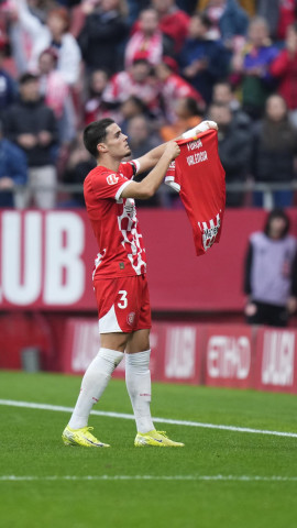 Tras una batería de rebotes, Miguel Gutiérrez recibe la pelota escorado a la izquierda del área de Dmitrovic y conecta una volea que le cuela por debajo de las piernas al serbio.