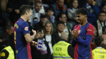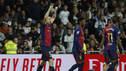 El delantero polaco recibió una gran asistencia de Marc Casadó y batió a Lunin con un disparo ajustado a la base del palo izquierdo de la portería madridista.
