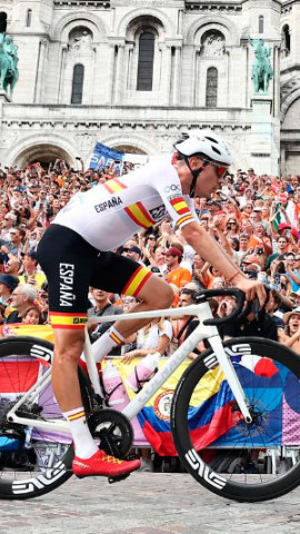 El ciclista español atiende a Quique Iglesias en las horas previas al Mundial que se disputa el domingo.