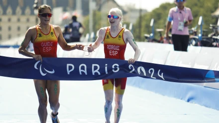 La gallega Susana Rodríguez y su guía, la barcelonesa Sara Pérez, se convirtieron este lunes en campeonas paralímpicas en París