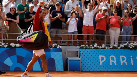 La ambición de la tenista española, en el micrófono de Isaac Fouto tras derrotar en primera ronda de los Juegos Olímpicos a Petra Martic.