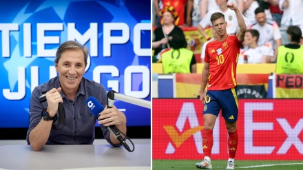El director y presentador de Tiempo de Juego volvió a realizar uno de sus tradicionales 'Nostrapacus' con Dani Olmo y el jugador del Leipzig acabó por hacer el 1-0 poco después.