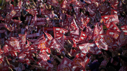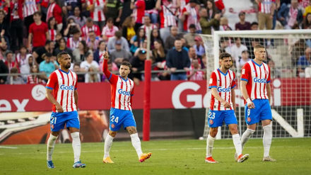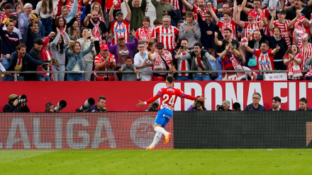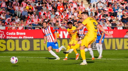 La afición del Girona cantó con 'olés' los pases de su equipo durante el final del partido ante el Barcelona.
