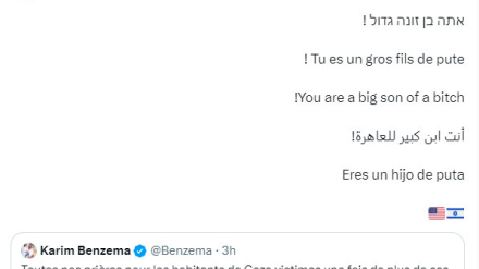 Benzema escribió un mensaje a favor de los palestinos y fue respondido por el exguardameta.