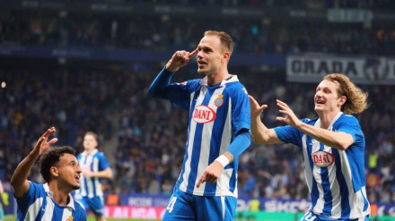 Mingueza, con una gran internada, provocó el penalti y el delantero lo lanzó ajustado a la base del palo derecho de la portería de Joan García, que no pudo evitar el gol.
