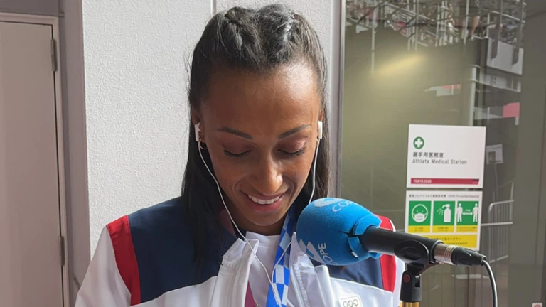 No he dormido nada, ha reconocido la medallista olímpica en el micrófono de Tiempo de Juego tras recibir la medalla de bronce en salto de longitud.