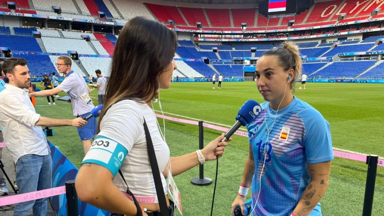 La portera de la selección española femenina de fútbol valoró en el micrófono de Andrea Peláez la clasificación para las semifinales de los Juegos Olímpicos.