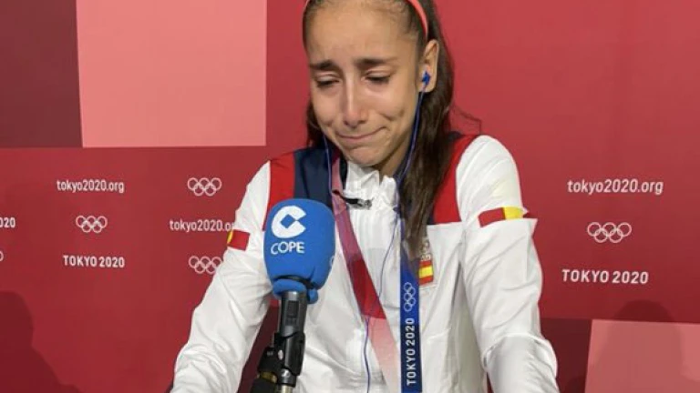 La joven taekwondista habla con sus padres después de conseguir la medalla de plata a través de los micrófonos de la cadena COPE.