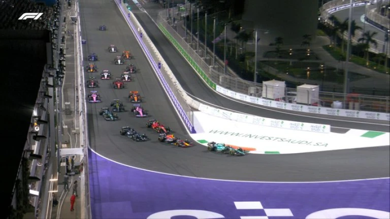 Escucha la salida del GP de Arabia Saudí donde Fernando Alonso adelantó a Pérez y se puso primero