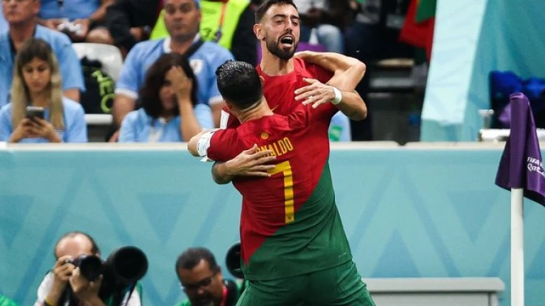 Gol de Bruno Fernandes (Portugal, 1 - Uruguay, 0)