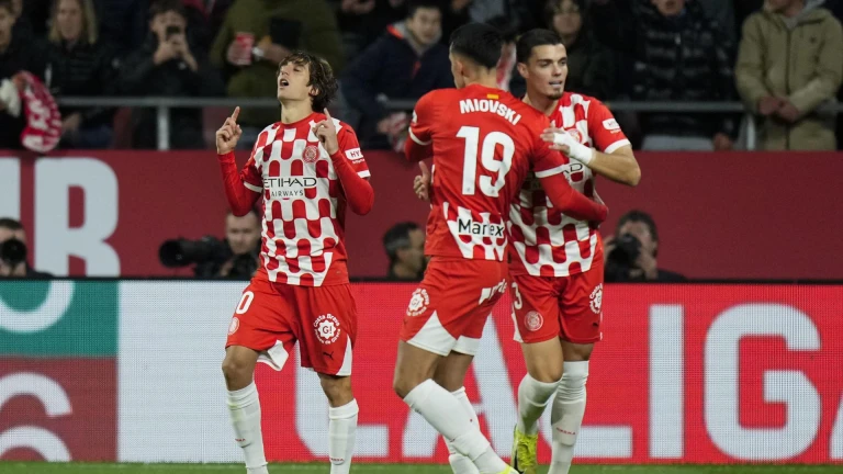 El extremo recibió el balón en la frontal del área y realizó una gran jugada individual que finalizó con un disparo cruzado imparable para Joan García.