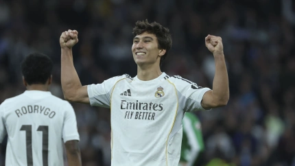 Pase de Rüdiger al desmarque de Güler que puso el centro al área pequeña que remató Gonzalo de rabona.