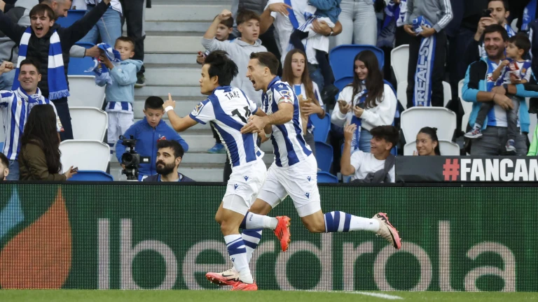 Sergio Gómez recibe un gran pase en el interior del área y asiste al japonés en el segundo palo para que marque a placer.