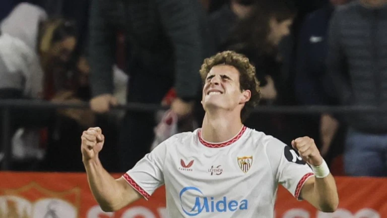 El mediocentro remató en la frontal del área con su pierna izquierda tras un córner, que adelanta momentáneamente al Sevilla