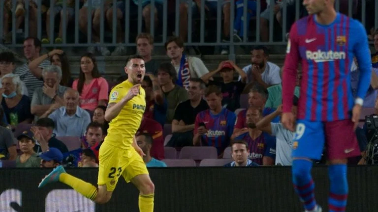 Gol de Moi Gómez (Barcelona, 0 - Villarreal, 2)