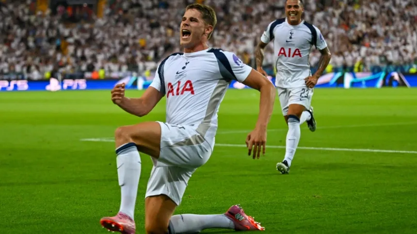 Gol de Van de Ven (PSG, 0 - Tottenham, 1)