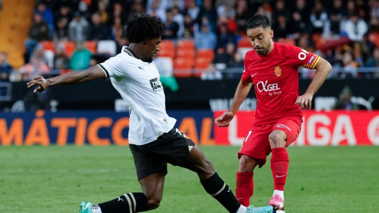El jugador del Mallorca se mostró muy contento por el recibimiento de Mestalla y hablaba así de la final de Copa: "Lo bueno es que tenemos muchísima ilusión, podemos competirlo"