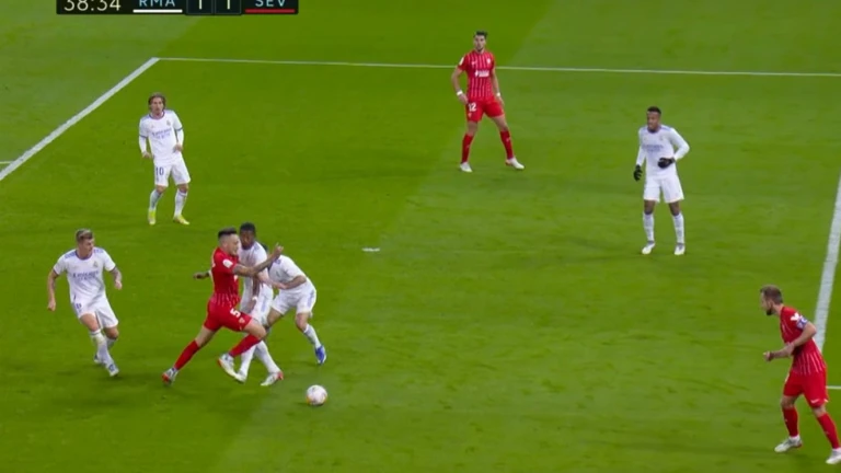 'Monchi', sobre la jugada entre Alaba y Ocampos: "No es subjetivo, es penalti, pero no es nuevo"