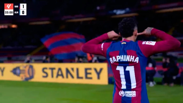 Raphinha marcó el 1-0 del Barcelona ante el Almería, en el partido de la jornada 19 de LaLiga. El brasileño marcó y su celebración fue muy comentada en Tiempo de Juego.