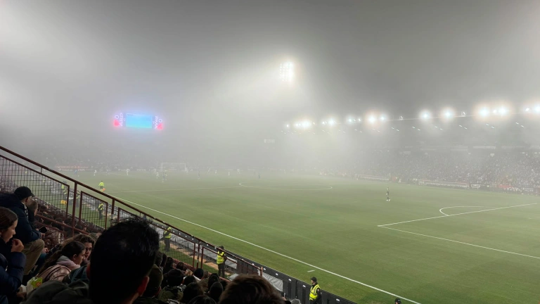 Con el paso de los minutos, la situación ha empeorado. Lo que al principio eran unas chispas se ha transformado en un banco de niebla que ya es 'preocupante', tal y como han señalado los comentaristas. La visibilidad es tan reducida que uno de los lados del campo se ha vuelto prácticamente invisible, lo que ha llevado a Miguel Ángel Díaz 'Miguelito' a vaticinar que "en la segunda parte, la vamos a pasar mal".