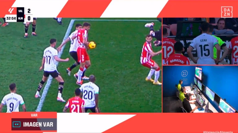El Almería vio como el colegiado, tras consultar la jugada en el VAR, anulaba un tanto cuando iba 2-0 a favor del Valencia.