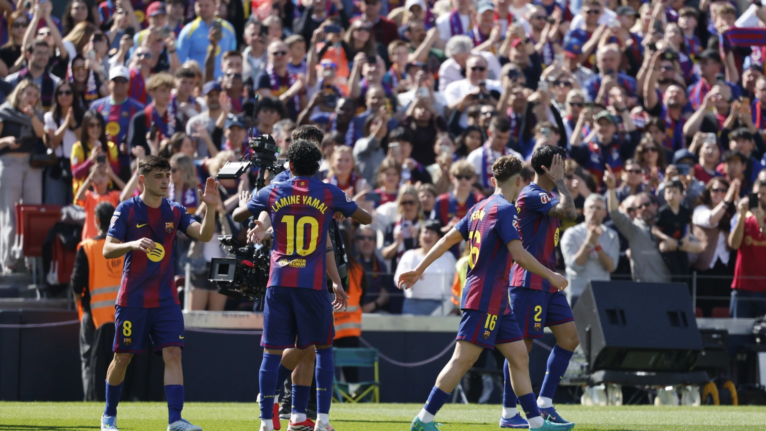1 - Barcelona: Joan Garcia; Araujo, Cubarsí, Gerard Martín, Cancelo (Xavi Espart, min.90); Bernal (Casadó, min. 60), Pedri; Fermín (Olmo, min. 60); Lamine Yamal (Rashford, min.82), Raphinha; y Lewandowski (Ferran, min. 46)