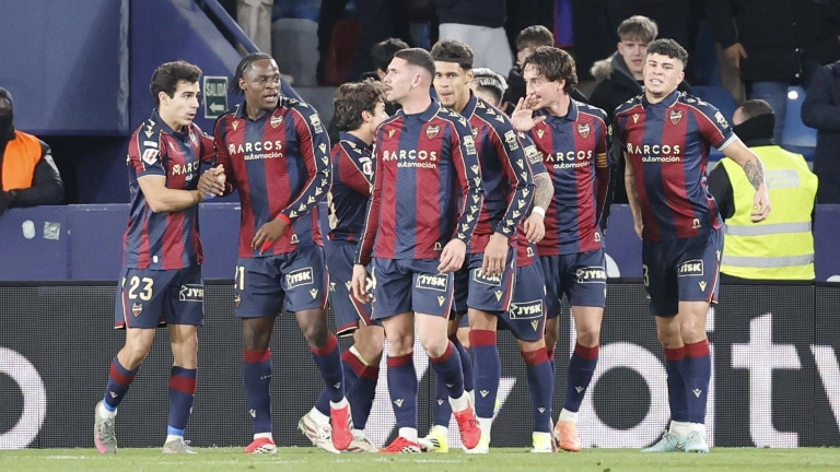 El Levante UD ha derrotado este viernes por 3-2 al Elche CF con goles de Pablo Martínez, de Adrián 'Dela' y el definitivo de Alan Matturro en el tiempo de descuento, en el partido que abría la jornada 21 de LaLiga EA Sports y cuyo resultado ha significado el primer triunfo en casa de los 'granotas' en este curso liguero 2025/26.