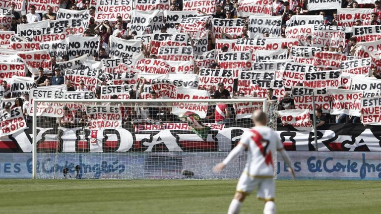 "Este es nuestro estadio, no nos moverán", así lucían las pancartas de varios seguidores rayistas durante el choque de este domingo ante el Real Madrid.