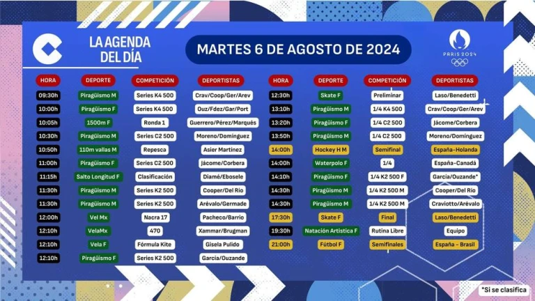 Agenda olímpica 6 de agosto
