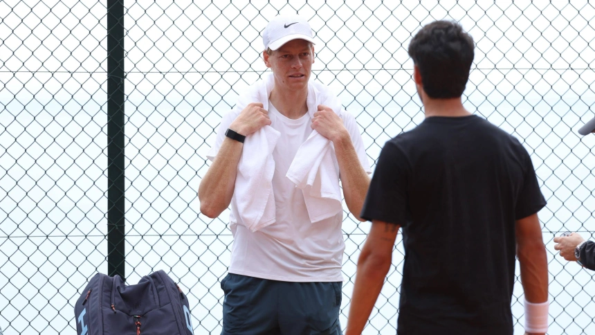 Alcaraz y Sinner hablan en el campo de entrenamiento de Montecarlo