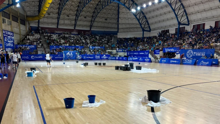 El Alzira-Málaga de ascenso a Primera en fútbol sala, marcado por las goteras del pabellón municipal: "La pista se llena de cubos"