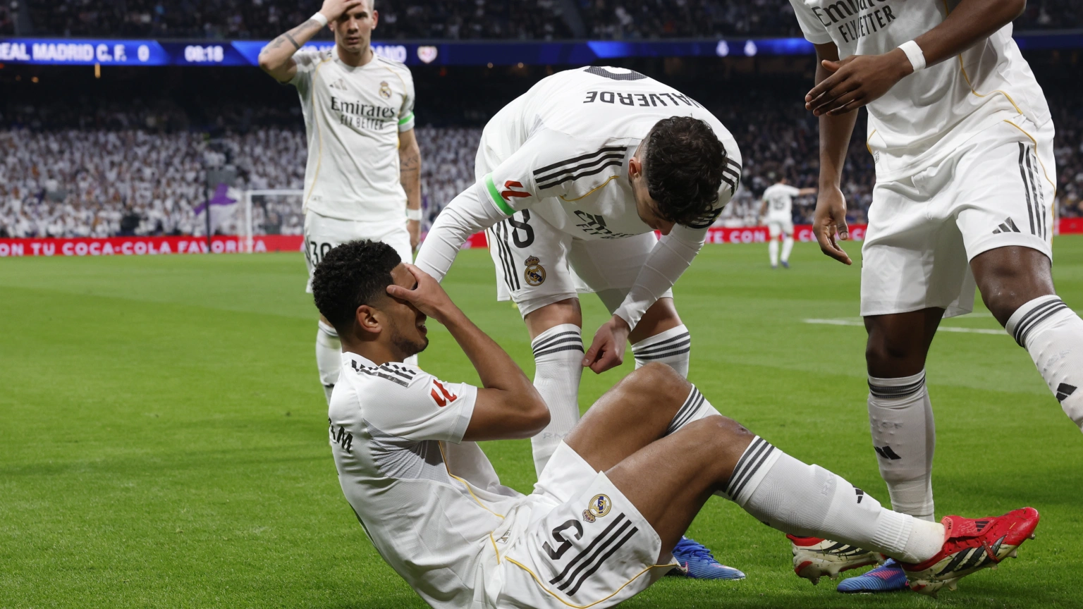 Bellingham recibió un pase al espacio del argentino Franco Masantuono y, en la carrera, sintió un pinchazo que le hizo llevarse la mano a la zona afectada y tirarse al césped rápidamente con claros síntomas de dolor.