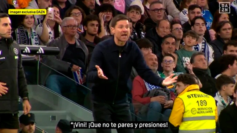 Dazn captó el momento en que Xabi Alonso le pide más a Vinicius en el partido de este domingo frente al Betis