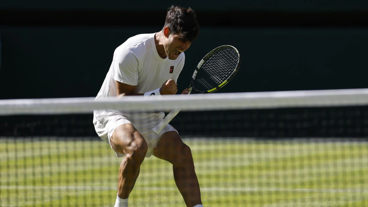 Calor inusual en Londres, presión de ser el máximo favorito y un tenista sin nada que perder y con el talento brutal de Fabio Fognini. Cóctel explosivo para una primera ronda de Wimbledon que Carlos Alcaraz solventó alejado de su brillantez habitual (7-5, 6-7 (5), 7-5, 2-6 y 6-1), pero con un resultado pragmático y apretado para avanzar, lo prioritario en este arranque de la conquista del tercer título en el All England Club.