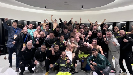 Los jugadores del Ceuta celebran la victoria en San Sebastián