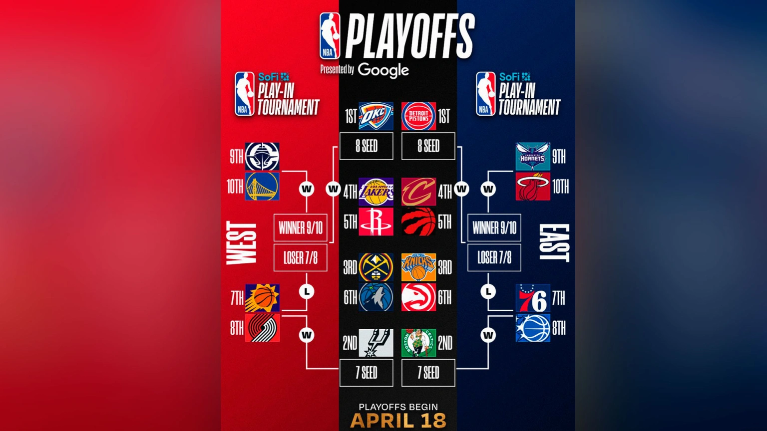 Así quedó definida este domingo la mitad del cuadro de la fase final, que comenzará este sábado 18 de abril con los Oklahoma City Thunder y los San Antonio Spurs aún a la espera de conocer a sus rivales, que saldrán del 'play-in'.