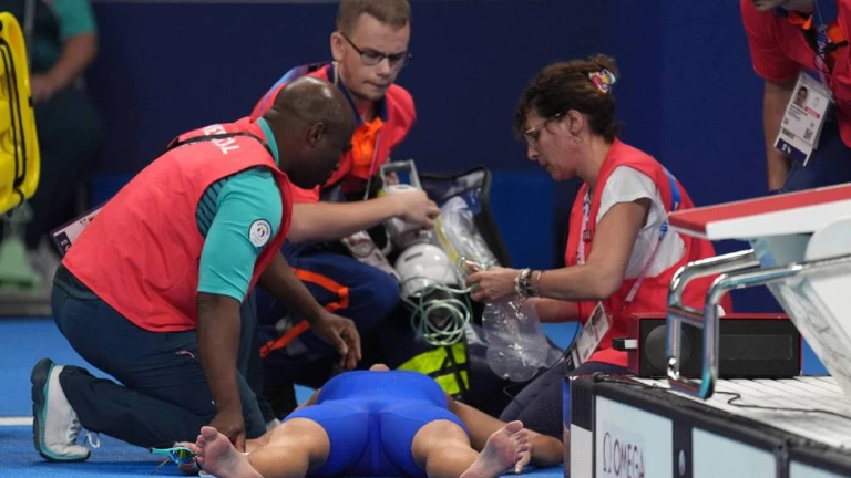Drama en la piscina olímpica: Potocka sale en camilla y con oxígeno