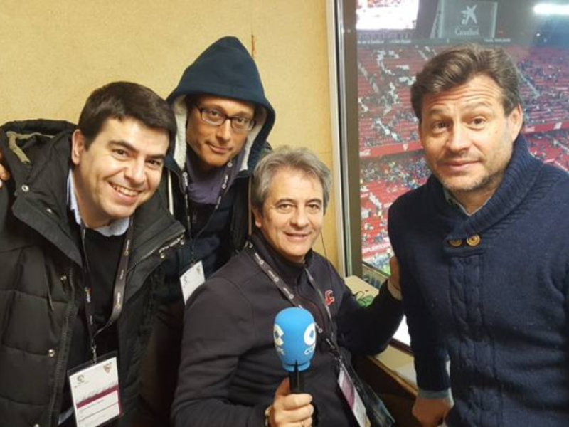 Pepe Prieto, junto a Manolo Lama, Miguel Ángel Díaz y Víctor Fernández, antes de un Sevilla-Real Madrid