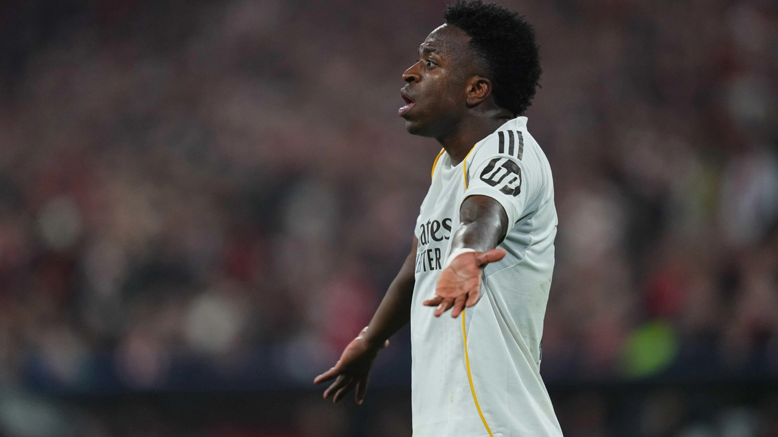 Además, el extremo también tuvo roces con sus propios compañeros. En una jugada de contraataque, Jude Bellingham controló un balón complicado y se lo cedió a Vinícius, pero la acción terminó en saque de banda. Según datos de la UEFA, Bellingham le dio cuatro pases al brasileño, mientras que Vinícius no le devolvió ninguno. Esto provocó el enfado del inglés, que le recriminó la situación levantando los brazos. La reacción de Vinícius fue negativa, respondiendo “¿Qué quieres? ¿Qué quieres? Calla la boca”.