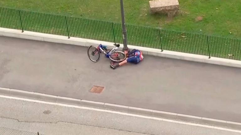 Harper perdió el control de la bicicleta y tras circular por una especie de acera acabó cayéndose de la bicicleta y golpeándose la cabeza con una farola que había en la cuneta. El aussie se quedó inmóvil en el suelo hasta que llegaron las asistencias y tuvo que abandonar. Podríamos estar hablando de una caída con funestas consecuencias porque el golpe con la farola fue fuerte y gracias al casco todo ha quedado en un susto.
