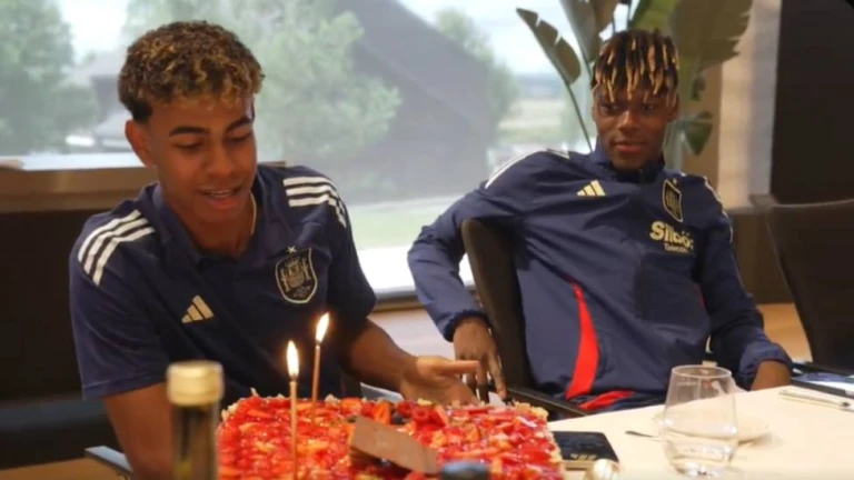 Lamine Yamal fue el gran protagonista de las últimas horas de la selección española en Donaueschingen, centro de las bromas en entrenamiento en vísperas de la final y soplando velas en una tarta de fresa por su 17 cumpleaños tras la comida, con un deseo expresado en voz alta: "de regalo quiero ganar". El joven celebra un año más de vida en la previa de la final de la Eurocopa que enfrenterá a España e Inglaterra en el Estadio Olímpico de Berlín.