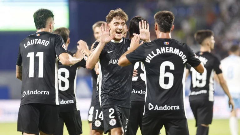 El conjunto andorrano sorprendió y goleó a un Real Zaragoza que se quedó con un jugador menos en el minuto 61.